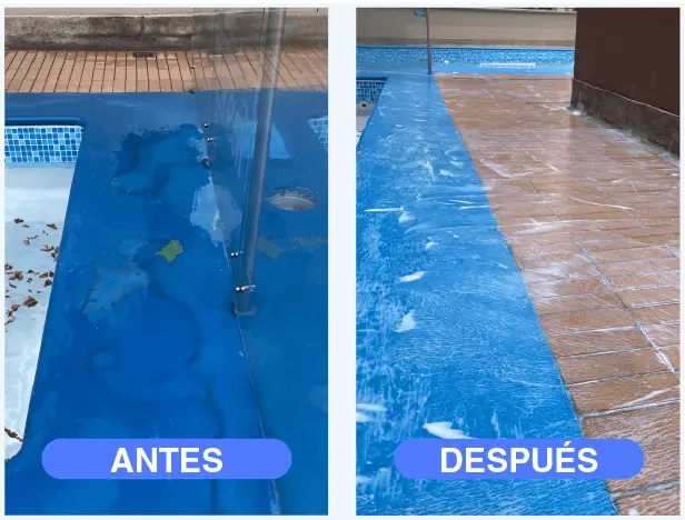 Resultado: Piscina protegida y restaurada. Durabilidad garantizada por 4 años. ¡Soluciones duraderas que transforman tus espacios!